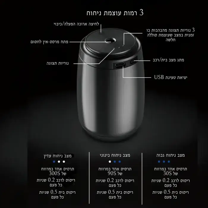 • שטח כיסוי: עד 10 מ"ר (אידיאלי לרכבים וחללים קטנים)
