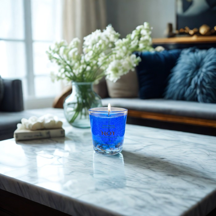 ה-Marine Soul הוא יצירת אמנות שקופה מבית Noy Aroma. הנר משלב שעוות ג'ל איכותית בגוון כחול אוקיינוס עם צדפים טבעיים השקועים בבסיסו, מה שיוצר אפקט של קרקעית ים מוארת. בזכות הגובה והשקיפות שלו, הלהבה מאירה את הכלי לכל אורכו ומשרה אווירה של רוגע ושלווה מוחלטת.